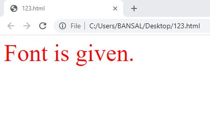 <html> <head> <body> <font face="magento" color="red" size=20>Font is given</font> </body> </html>