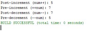 System.out.println("Post-increment (num++): " + (num++)); // Displays 5, then num becomes 6