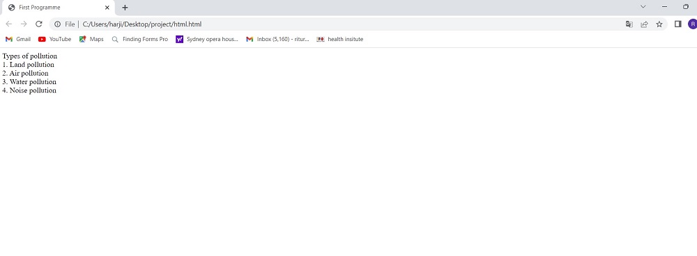 2. Air pollution <br> 3. Water pollution <br> 4. Noise pollution